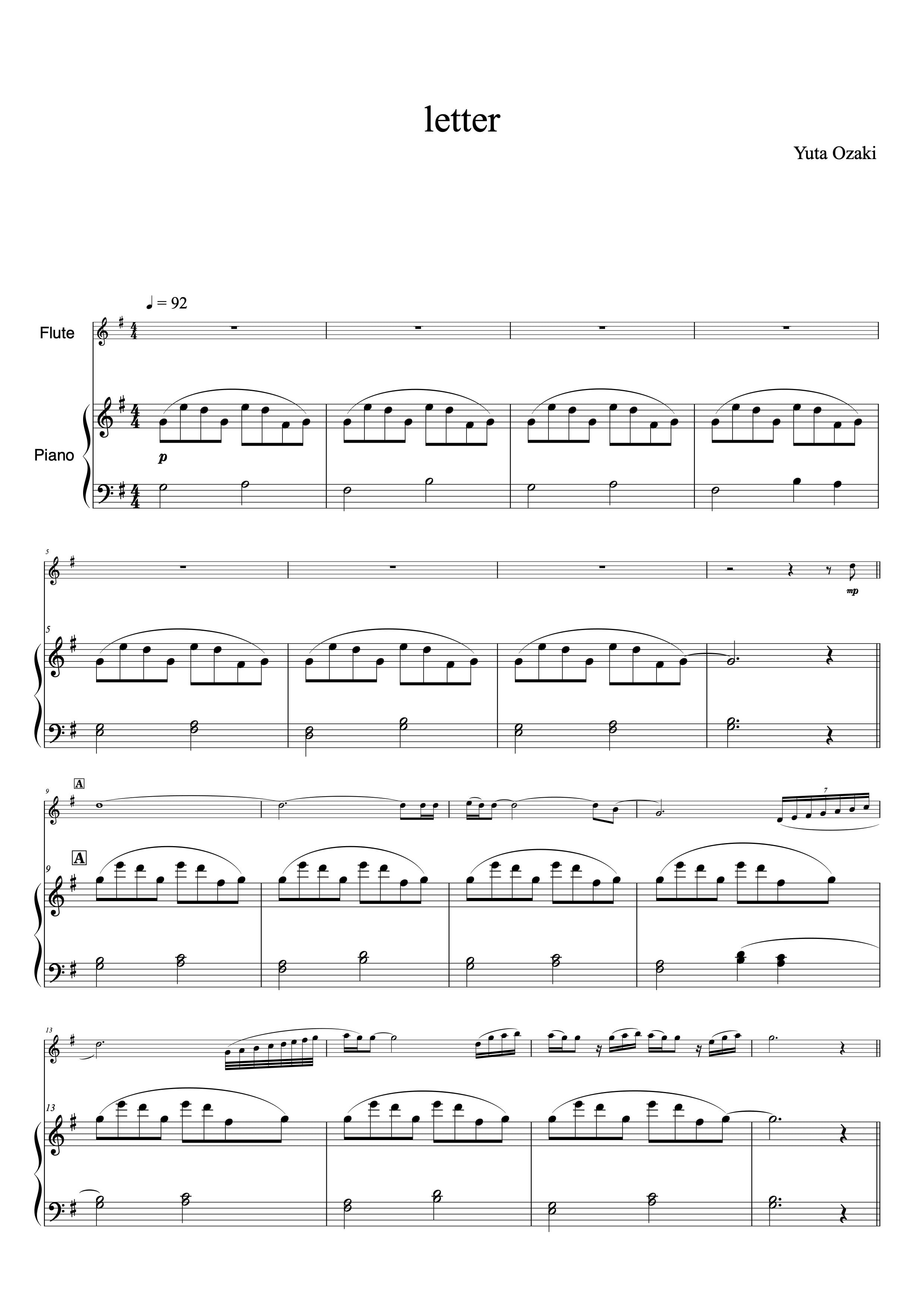 尾崎勇太作曲「letter」の公式スコアです。